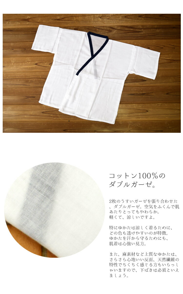 吸汗速乾性に優れたダブルガーゼで、涼しく夏でも快適 空気層が適度な保湿性を持ち、冬は温かい 心地よい肌触りで大人の敏感肌にも優しい素材 <<商品情報>> サイズ Mサイズ 身丈:約63cm 身幅:約59cm Lサイズ 身丈:約64.5cm 身幅:約65cm 素材 身頃:綿100% 袖:綿100% 掛衿:ポリエステル100%