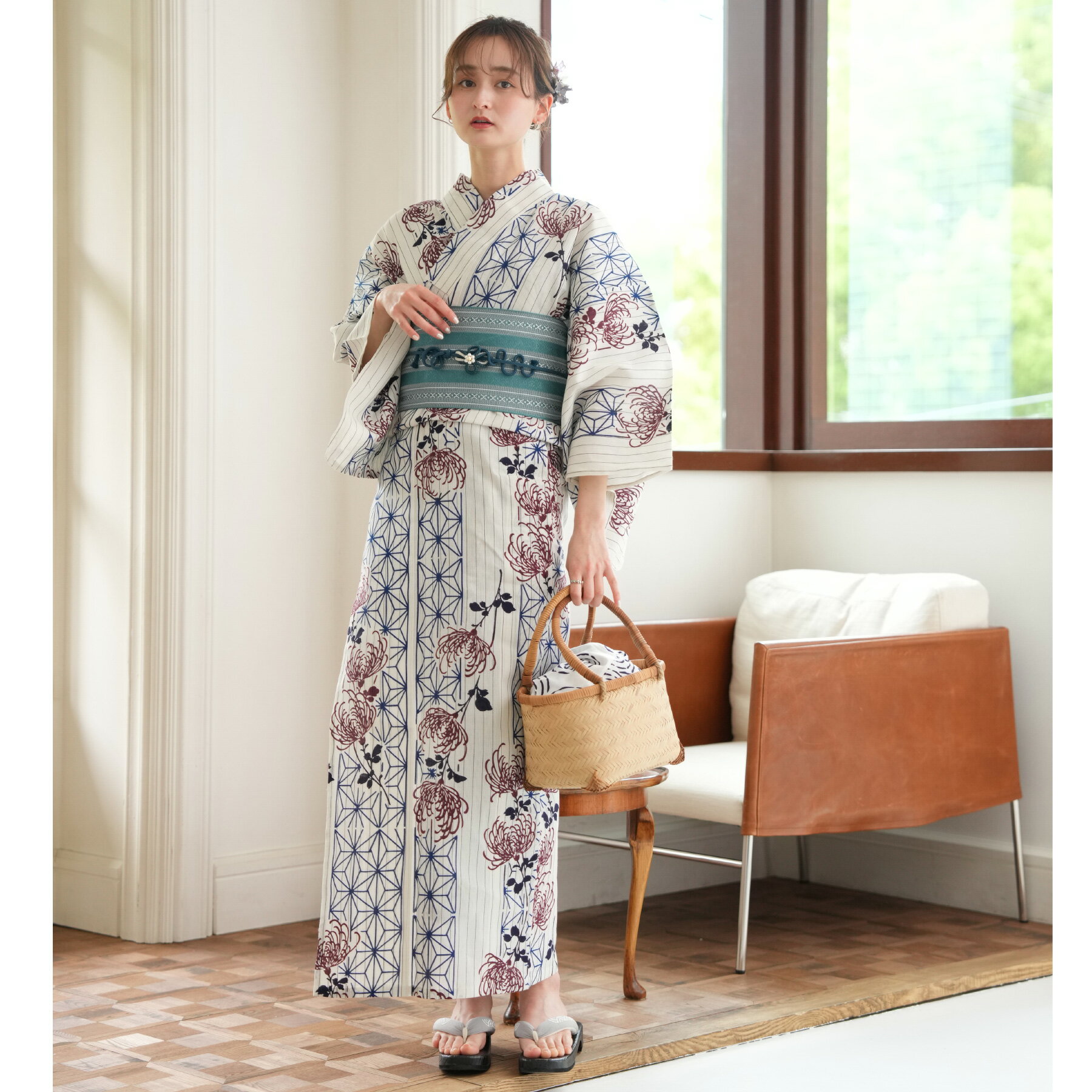 【実寸サイズ】 浴衣:身丈 約165cm・袖丈 約49cm・裄丈 約67cm 下駄:フリーサイズ(約22.5-24.5cm対応)