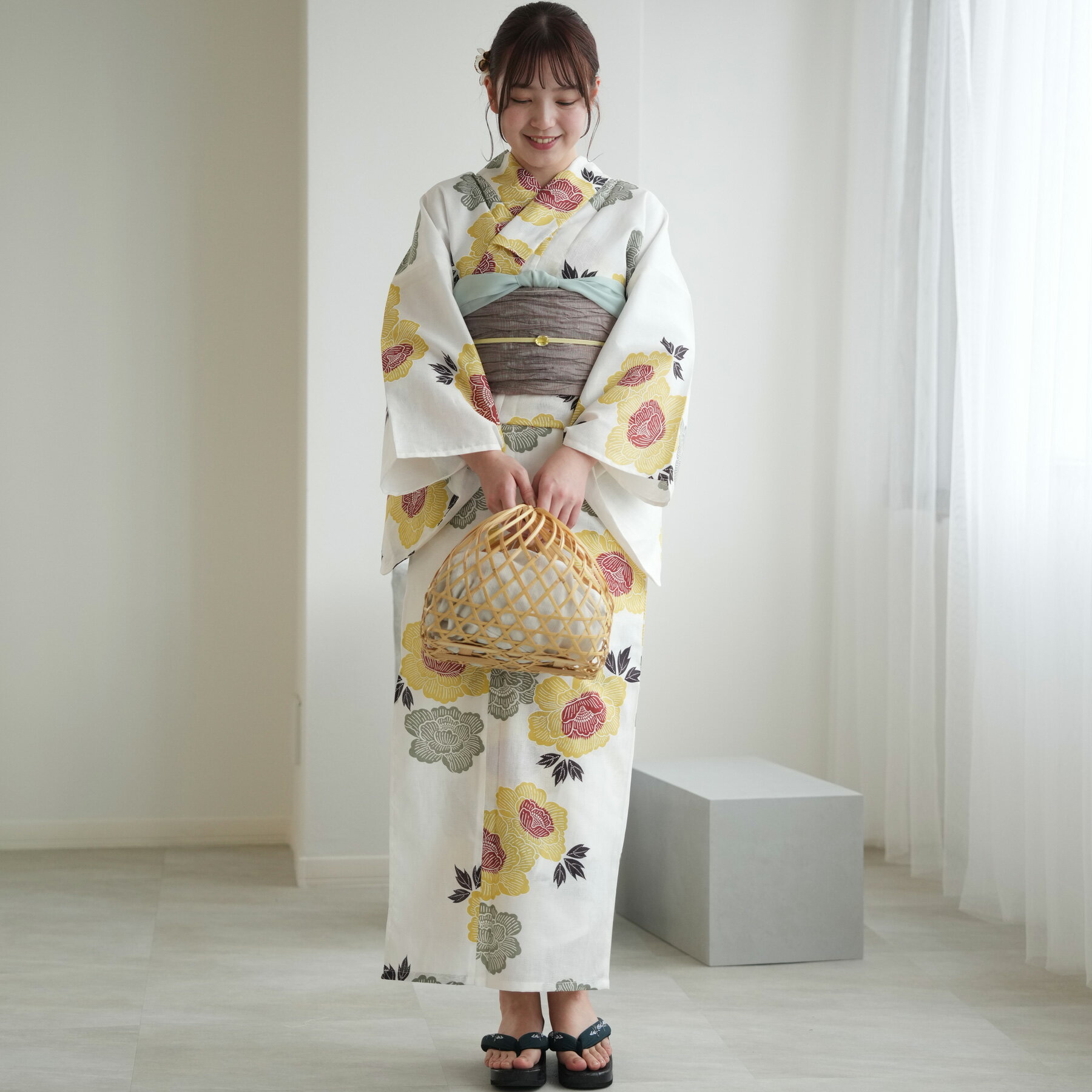 【実寸サイズ】 身丈 約170cm・袖丈 約49cm・裄丈 約70cm 下駄:フリーサイズ(約22.5-24.5cm対応)