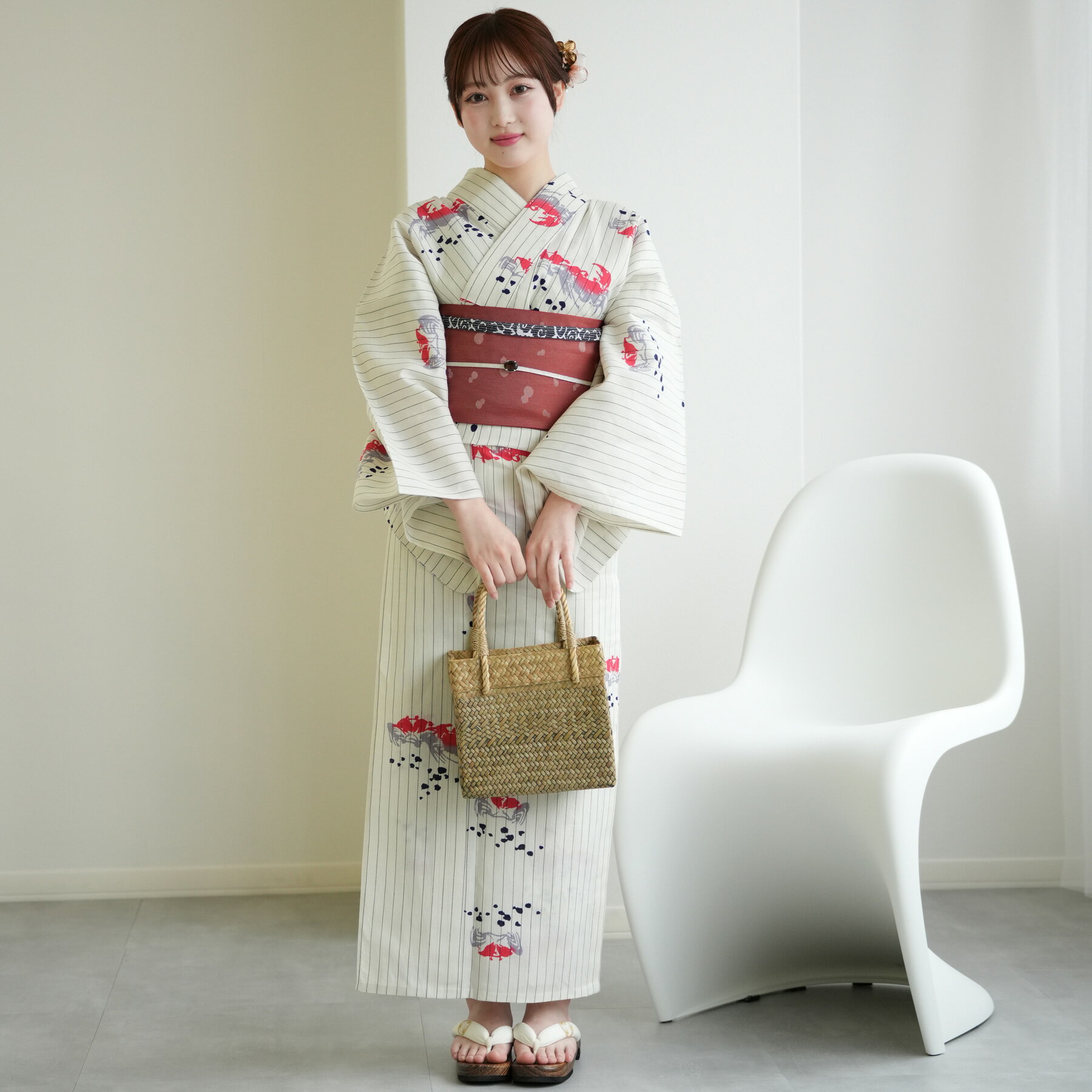 【素材】 浴衣:綿85%麻15% 帯:ポリエステル 下駄:桐