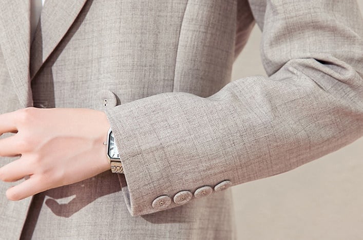 「カラー」 グレー系(cm)M ジャケット丈:66cm バスト:100cm 肩幅:39 袖:58 ウエスト:70 ヒップ:94 スカート丈:76L ジャケット丈:67cm バスト:104cm 肩幅:40 袖:59 ウエスト:74 ヒップ:98 スカート丈:77XL ジャケット丈:68cm バスト:108cm 肩幅:41 袖:60 ウエスト:78 ヒップ:102 スカート丈:78
