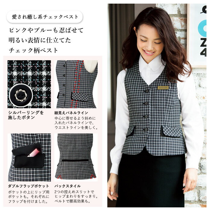 ピンクやブルーも忍ばせた明るい表情に仕立てたチェック柄ベスト。
