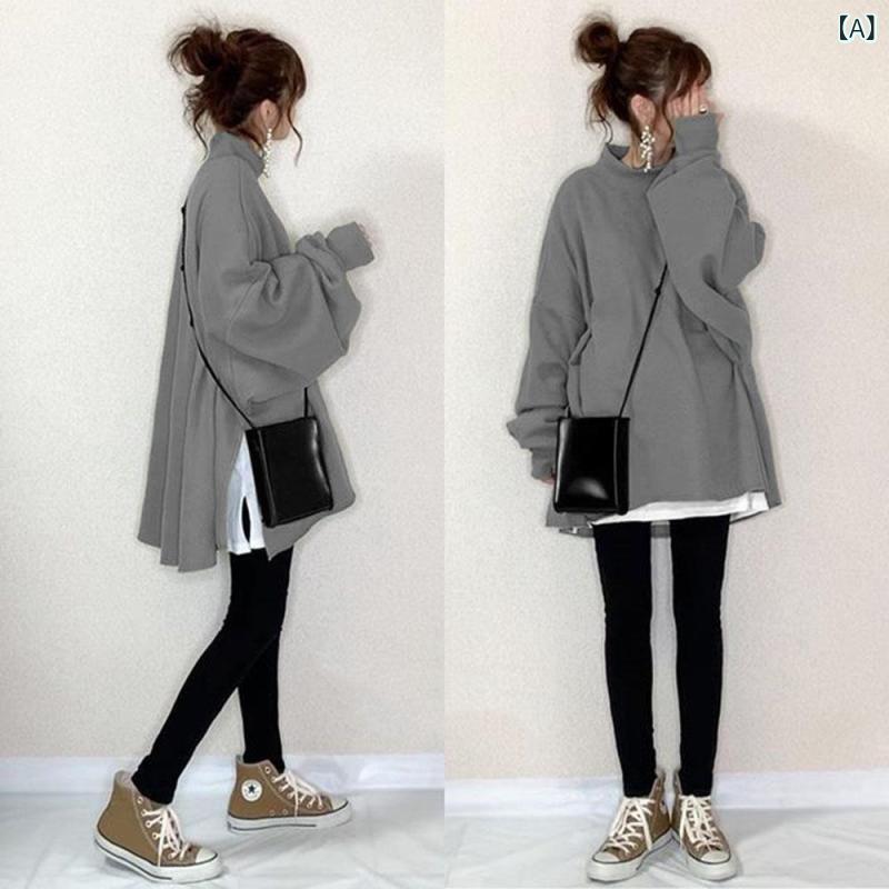 ・柄: 無地・スタイル: カジュアル、韓国風・フィット: ゆったり・袖丈: 長袖・袖のタイプ: レギュラー・ネックライン: ハイネック・素材: 綿、その他・カラー: グレー、グリーン、ブラック、ブルー、ピンクパープル、ライトグレー、ネイビー・サイズ: フリーサイズ・対象: レディース・カテゴリ: トレーナー/スウェット