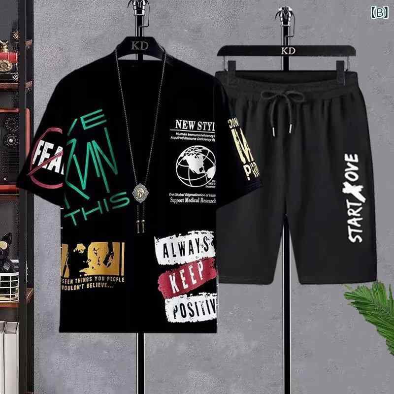 ・スタイル: 流行・厚さ: 薄手・パンツ丈: ショートパンツ・トップス: Tシャツ・袖丈: 半袖・フード: なし・対象年齢: 18-24歳・生地: 化学繊維混紡・主な素材: ポリエステル100%・シーン: カジュアル・在庫: あり・カラー: ホワイト, ブラック, グリーン, ブルー, グレー, カーキ・サイズ: M, L, XL, XXL, 3XL・カテゴリ: メンズカジュアルセットアップ