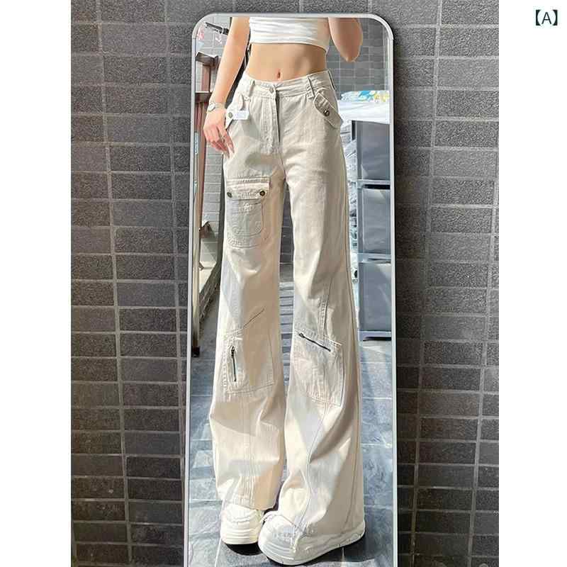 ・素材: 綿・スタイル: カジュアル、韓国風・パンツ丈: フルレングス・股上: ハイウエスト・厚さ: 普通・デザイン: 刺繡、蝶結び・カラー: アプリコット・サイズ: S, M, L, XL, 2XL, 3XL, 4XL, 5XL・パンツシルエット: ストレート、ワイドレッグ・生地: デニム・伸縮性: なし