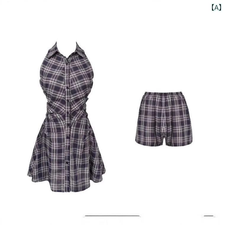 ・素材: ポリエステル・柄: 格子柄・スタイル: ベーシック・セット内容: ワンピース、ショートパンツ・スカート丈: ミニ丈・スカートタイプ: Aライン・ネックライン: Vネック・袖丈: ノースリーブ・ウエスト: ハイウエスト・流行のデザイン: 格子柄・カラー: 格子柄・サイズ: S, M, L, XL, XXL・系統: セクシー、スイート・前開き: シングルブレスト・ワンピースの種類: ワンピース・主素材の含有量: 30%以下
