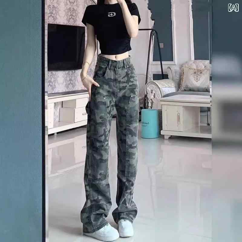 ・素材: 綿、スパンデックス・パンツ丈: フルレングス・スタイル: ワイドレッグパンツ・ウエスト: ハイウエスト・厚さ: 普通・特徴: ボタン・カラー: 迷彩・サイズ: S、M、L、XL、2XL・テイスト: 通勤・生地: デニム・伸縮性: ややあり・パンツスタイル: ストレート・生地加工: 防しわ加工・素材割合: 50-70%・素材割合(詳細): 30-50%