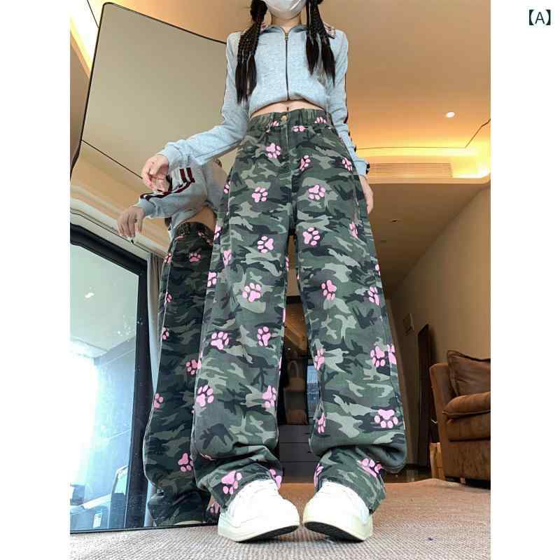 ・素材: デニム、綿・スタイル: ストレート・パンツ丈: フルレングス・股上: ハイウエスト・厚さ: 普通・デザイン: ジッパー・カラー: 迷彩柄・サイズ: S、M、L、XL・系統: ストリート・テイスト: 欧米・ストレッチ: なし・パンツシルエット: ストレート