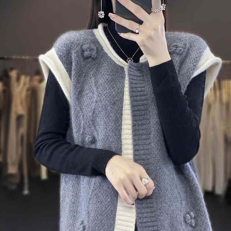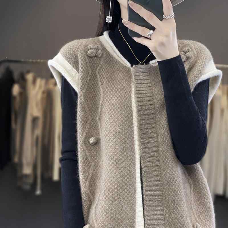 ・カテゴリ: カーディガン・着丈: 普通(50cm以上65cm以下)・ネックライン: ラウンドネック・柄: 無地・素材: ウール・カラー: ミディアムグレー, パープル, バーガンディ・サイズ: M, L, XL・スタイル: カジュアル, 韓国風・対象: レディース・フィット: ゆったり・主な素材の含有量: 95%以上・前立て: スナップボタン・製品タイプ: ベスト/ジレ