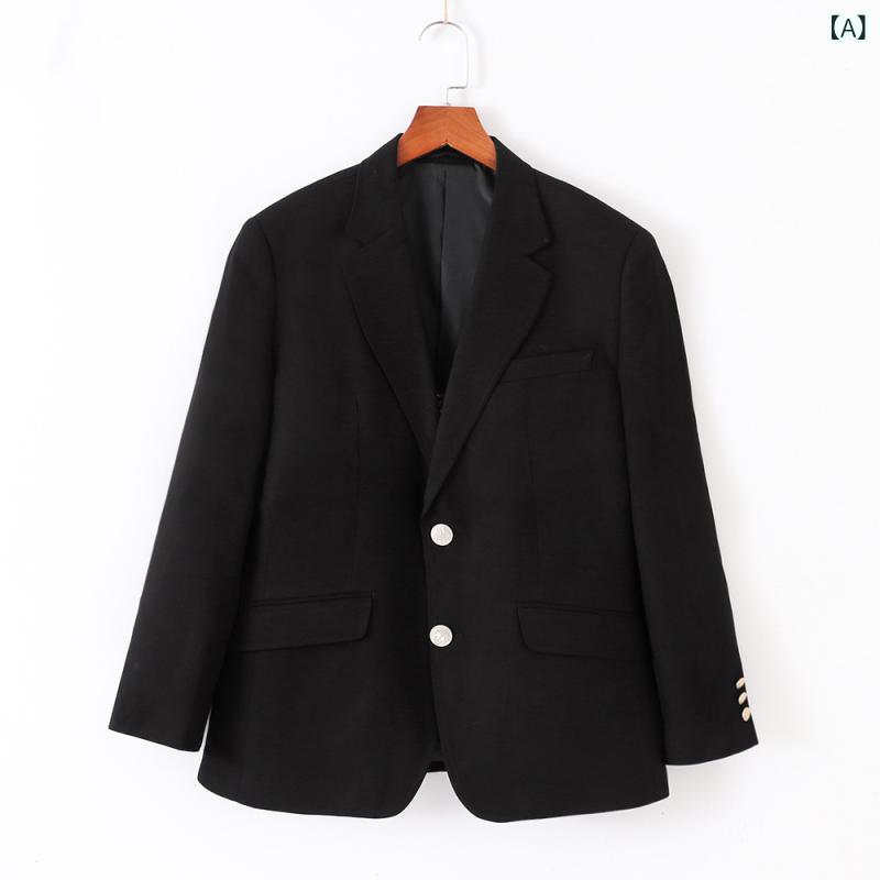 ・カテゴリ: カジュアルスーツ・スタイル: ブリティッシュ・フィットタイプ: ルーズ・素材: ポリエステル60%・柄: 無地・ボタン: シングルブレスト2ボタン・カラー: ブラック、ブルー・サイズ: S、M、L、XL、XXL、3XL・対象: メンズ・対象年齢: 大人