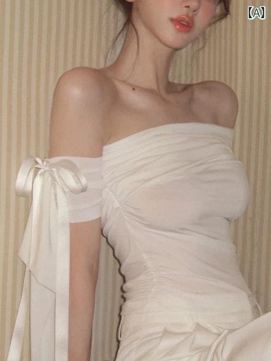 ・カテゴリ: Tシャツ・素材: ポリエステル・柄: 無地・スタイル: プルオーバー・袖丈: ノースリーブ・フィット: スリム・着丈: ミドル丈(50cm超65cm以下)・ネックライン: オフショルダー・カラー: ホワイト・サイズ: S、M・テイスト: 通勤・主素材含有量: 50%-70%・主素材2含有量: 30%-50%・加工: プリーツ