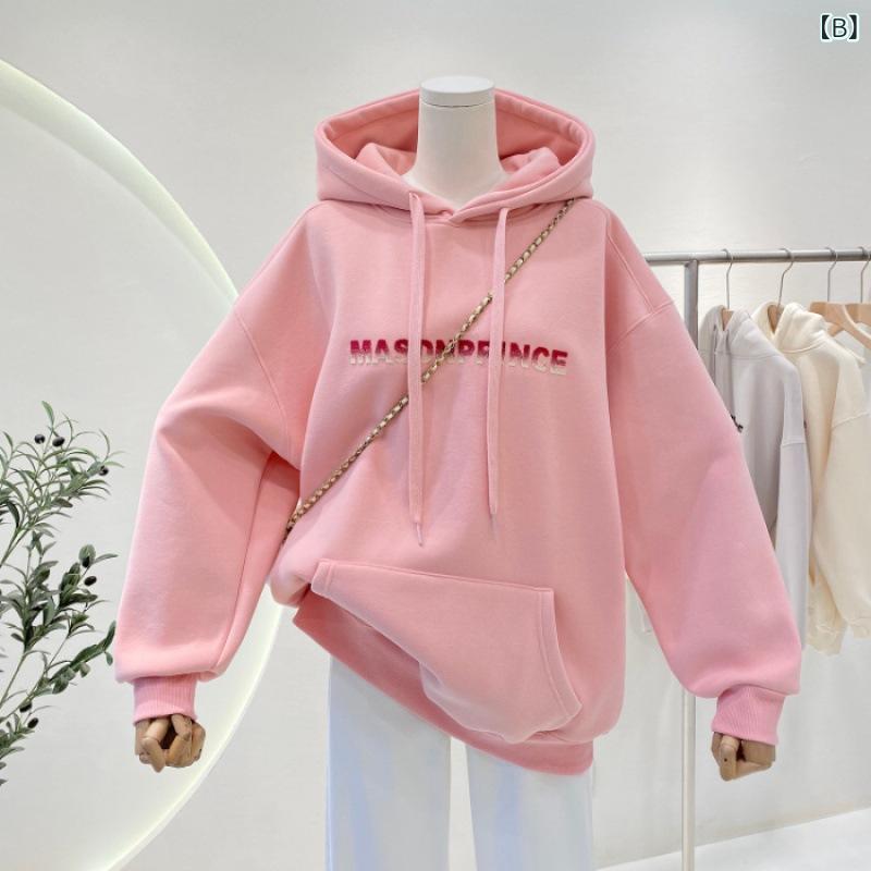 ・カテゴリ: 卫衣/绒衫・柄: 文字・スタイル: 通勤・袖丈: 長袖・ネックライン: フード付き・タイプ: プルオーバー・厚さ: 厚手・素材: ポリエステル・メイン素材含有量: 80-90%・カラー: ライトグレー, シャーピンク, アプリコット, パープル・サイズ: S, M, L, XL, 2XL, 3XL・フィット: ゆったり・着丈: ミドル丈(50cm超65cm以下)・袖タイプ: レギュラー・ディテール: ポケット