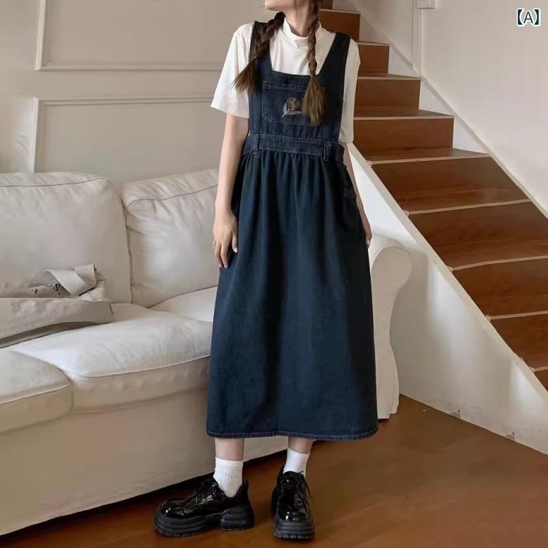 ・素材: デニム、綿50-70%・柄: 無地・スタイル: 背帯式、少女風、快適カジュアル・スカート丈: ミモレ丈・スカート型: サスペンダースカート・ネックライン: オフショルダー・袖丈: ノースリーブ・ウエスト: ミドルウエスト・カラー: ブルーグレー・サイズ: S, M, L, XL, 2XL, 3XL, 4XL, 5XL・フロント: プルオーバー・種類: ワンピース