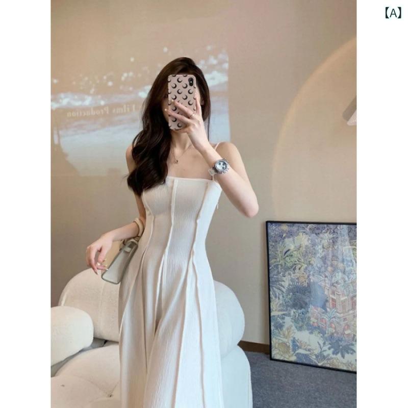 ・素材: ポリエステル・柄: 無地・製法: 縫製・スタイル: キャミソールワンピース・組み合わせ: ワンピース・スカート丈: ロング・スカートタイプ: Aライン・ネックライン: キャミソール・袖丈: ノースリーブ・ウエスト: ミディアムウエスト・カラー: オフホワイト、ブラック・サイズ: S、M、L、XL・テイスト: エレガント、通勤・フロント: プルオーバー・素材構成: ポリエステル95%以上・ワンピース種類: ワンピース・雰囲気: スイート、ガーリー