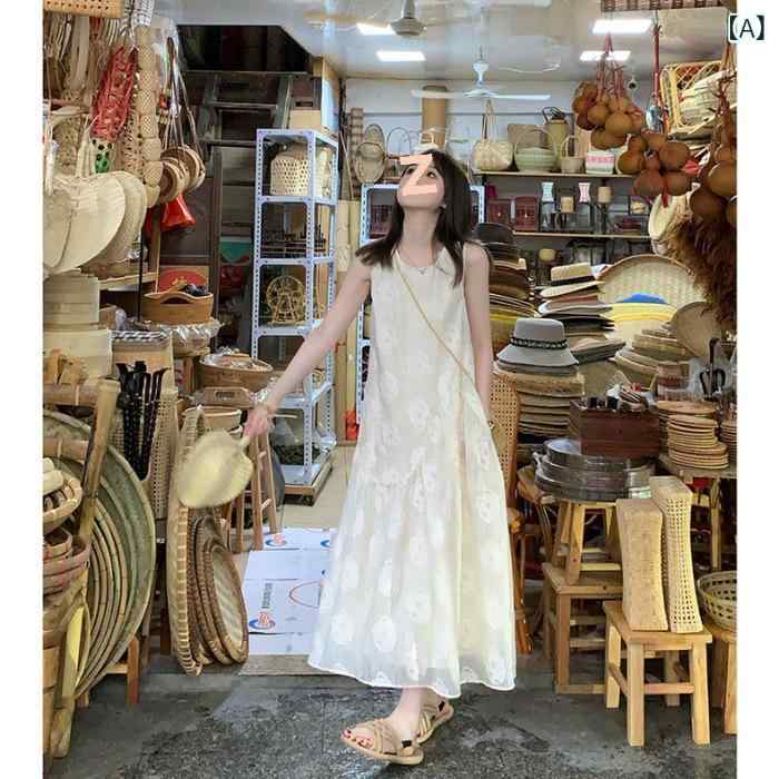 ・素材: ポリエステル・柄: 無地・スタイル: 基本・スカート丈: ミモレ丈・スカート型: サスペンダースカート・ネックライン: ラウンドネック・袖丈: ノースリーブ・ウエスト: ゆったり・流行要素: サスペンダー・カラー: オフホワイト・サイズ: S, M, L, XL, 2XL・スタイル: スウィート、ガーリー・フロント: プルオーバー・生地メイン構成: ポリエステル30%-50%・テイスト: 田園・スカート種類: ワンピース