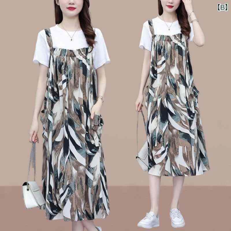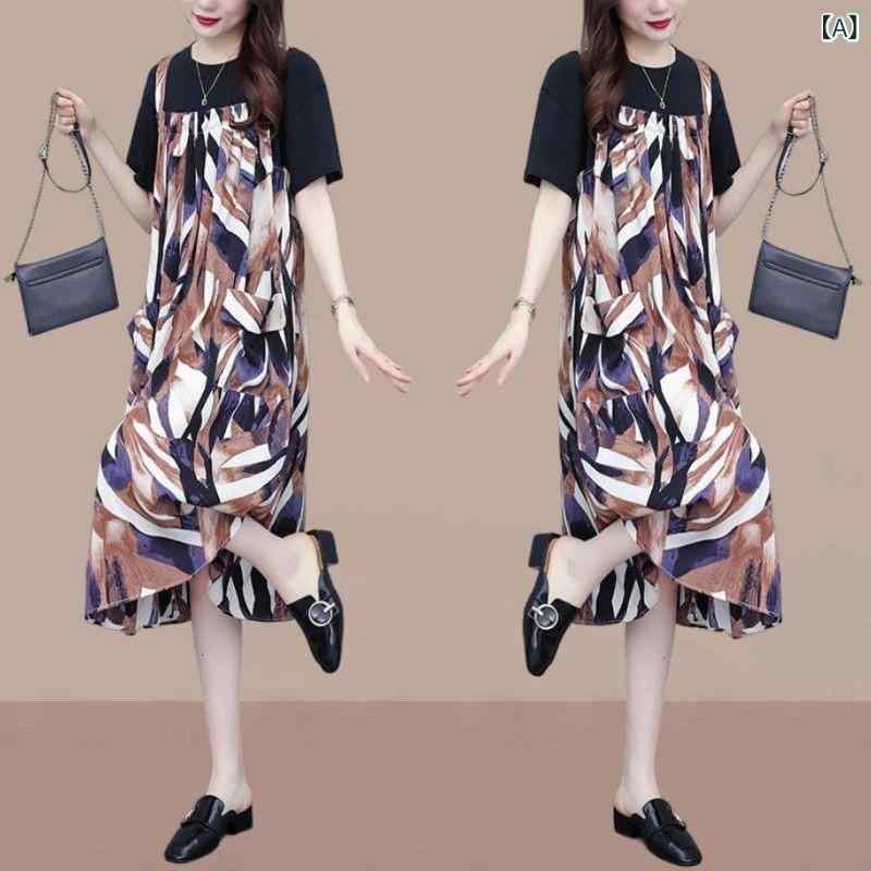 ・素材: シフォン、ポリエステル・柄: 幾何学模様・スタイル: 基本款・セット内容: 2点セット・スカート丈: ミモレ丈・スカート型: Aライン・ネックライン: ラウンドネック・袖丈: 半袖・ウエスト: ゆるめ・デザイン: 拼接・カラー: レッド、グリーン・サイズ: L、XL、XXL、XXXL、4XL、5XL・スタイル: 大人可愛い・タイプ: プルオーバー・テイスト: スイート、フレッシュ・生地の主成分含有量: 90-95%・スカート種類: ワンピース