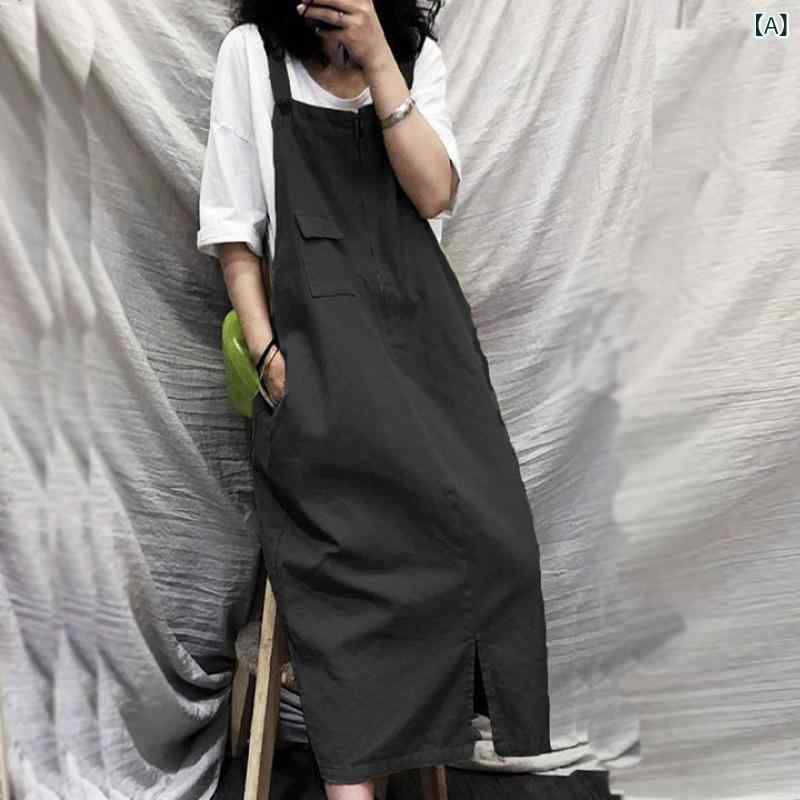 ・カテゴリ: ワンピース・スタイル: カジュアル、韓国風・柄: 無地・素材: 綿、ポリエステル・袖丈: ノースリーブ・ネックライン: スクエアネック・スカート丈: ロング・スカートタイプ: Aライン・ウエスト: ゆったり・流行の要素: ポケット、サスペンダー・カラー: ブラック、ダークブラウン、ミリタリーグリーン・サイズ: フリー