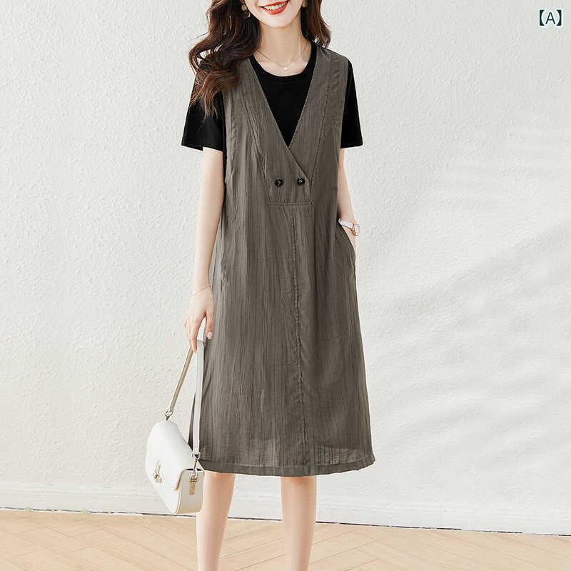 ・素材: ポリエステル繊維・柄: 無地・スタイル: プルオーバー・スカート丈: ミモレ丈・スカートタイプ: Aライン・ネックライン: ラウンドネック・袖丈: 半袖・ウエスト: ゆったり・カラー: 画像色・サイズ: M、L、XL、2XL・テイスト: 通勤・種類: ワンピース・主素材含有量: 90-95%