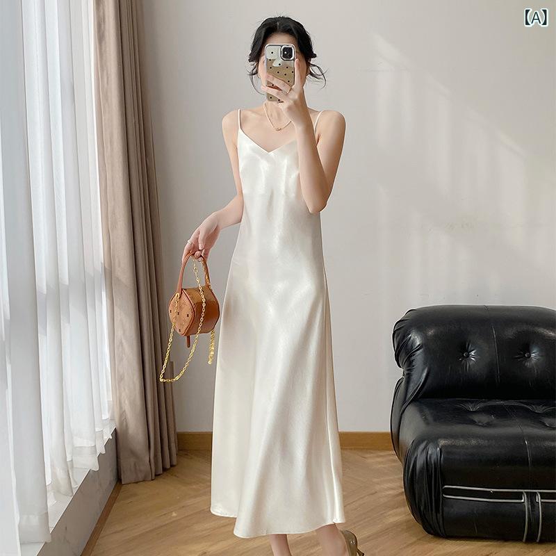 ・素材: ポリエステル・柄: 無地・スカート丈: ロング・スカートタイプ: Aライン・ネックライン: Vネック・袖丈: ノースリーブ・カラー: 米白色, ブラック, シャンパン・サイズ: S, M, L, XL・スタイル: 通勤・カテゴリ: ワンピース・主素材の含有量: 95%以上