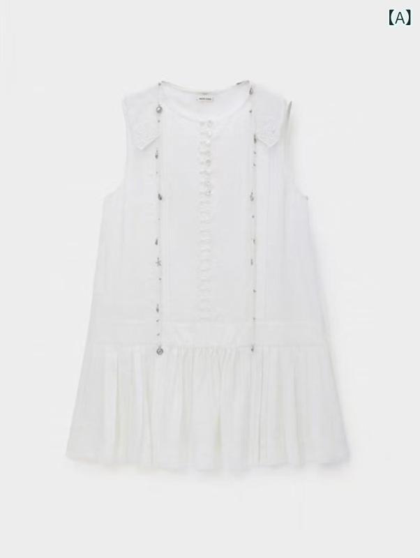 ・柄: 無地・スタイル: カジュアル、韓国風・スカート丈: ミニ・ネックライン: Uネック・袖丈: ノースリーブ・カラー: ホワイト・サイズ: S、M、L・スカート種類: ワンピース