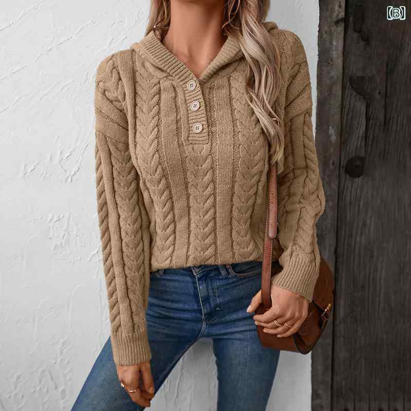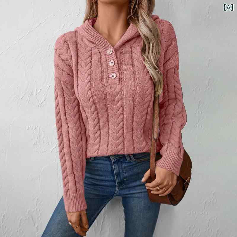 ・項目名: カテゴリ・値: ニット・セーター・項目名: 素材・値: 麻、アクリル・項目名: 柄・値: 無地・項目名: スタイル・値: ストリート、欧米風・項目名: 袖丈・値: 長袖・項目名: ネックライン・値: フード付き・項目名: シルエット・値: ルーズ・項目名: 着丈・値: ミドル丈(50cm~65cm)・項目名: カラー・値: ピンク、カーキ・項目名: サイズ・値: S、M、L、XL・項目名: 流行要素・値: ボタン・項目名: フロント・値: プルオーバー