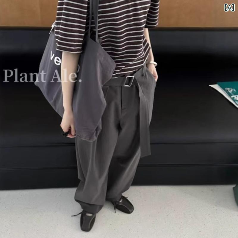 ・パンツ丈: ロングパンツ・素材: 綿・メイン素材: 綿・厚さ: 中厚・流行の要素: ベルト・パンツのタイプ: ワイドレッグ・ウエストタイプ: ハイウエスト・カラー: ダークグレー・サイズ: S, M・スタイル: エレガント、通勤・メイン素材の含有量: 95%以上・対象年齢: 大人・ストレッチ: なし・対象性別: 女性・製品カテゴリ: スーツパンツ/フォーマルパンツ・メイン素材2の含有量: 30%以下・メイン素材2: スパンデックス・工艺: 拼贴/拼接