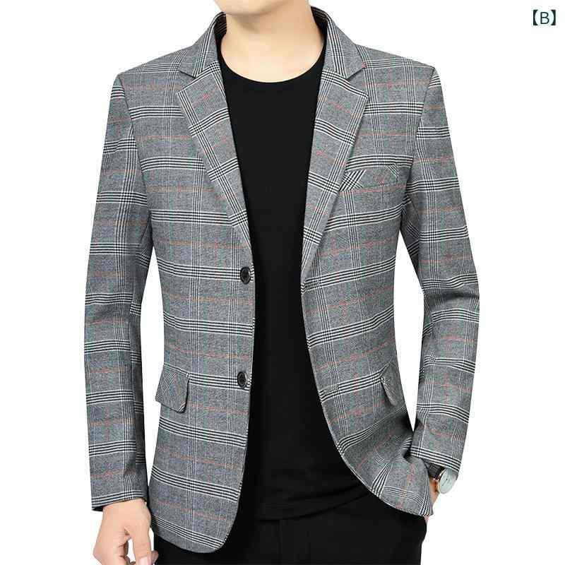 ・カテゴリ: テーラードジャケット・スタイル: ビジネス、カジュアル・対象: メンズ・素材: 化学繊維混紡、ポリエステル・柄: 格子柄・襟型: スーツ・前立て: シングルブレスト(2つボタン)・袖丈: 長袖・着丈: レギュラー・フィット: ストレート・ポケット: フラップポケット・色: ブルーグレー、グレー、コーヒー・サイズ: M、L、XL、XXL、XXXL、4XL