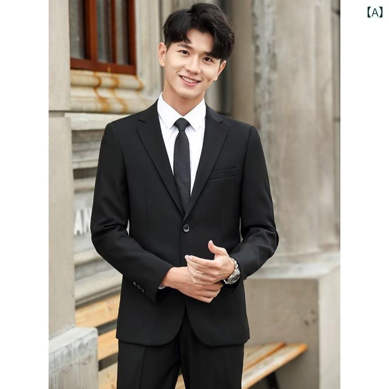 ・項目名: カテゴリ・値: ジャケット/ブレザー・項目名: 対象・値: メンズ・項目名: スタイル・値: ビジネス、カジュアル・項目名: 素材・値: 四面弾・項目名: 主な素材の構成・値: 綿50%・項目名: フィット・値: スリム・項目名: 襟のタイプ・値: ワイド・項目名: フロント・値: シングルブレスト、2つボタン・項目名: 袖丈・値: 長袖・項目名: 着丈・値: レギュラー・項目名: 柄・値: 無地・項目名: 色・値: ブラック・項目名: サイズ・値: S、M、L、XL、2XL、3XL、4XL、5XL・項目名: その他・値: アイロン不要・項目名: 下裾・値: ラウンド