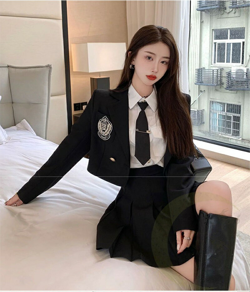 【製品仕様】 ・素材:ポリエステル ・カラー:ブラック、カーキ、ベージュ ・原産国:中国 ・商品内容 タイプ:2点セット「ジャケット、スカート」 タイプ:3点セット「ジャケット、スカート、シャツ、ネクタイおまけ」