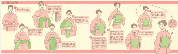 ◇帯を結ばずに付属のお太鼓止めで挟むので、帯を痛めません。
