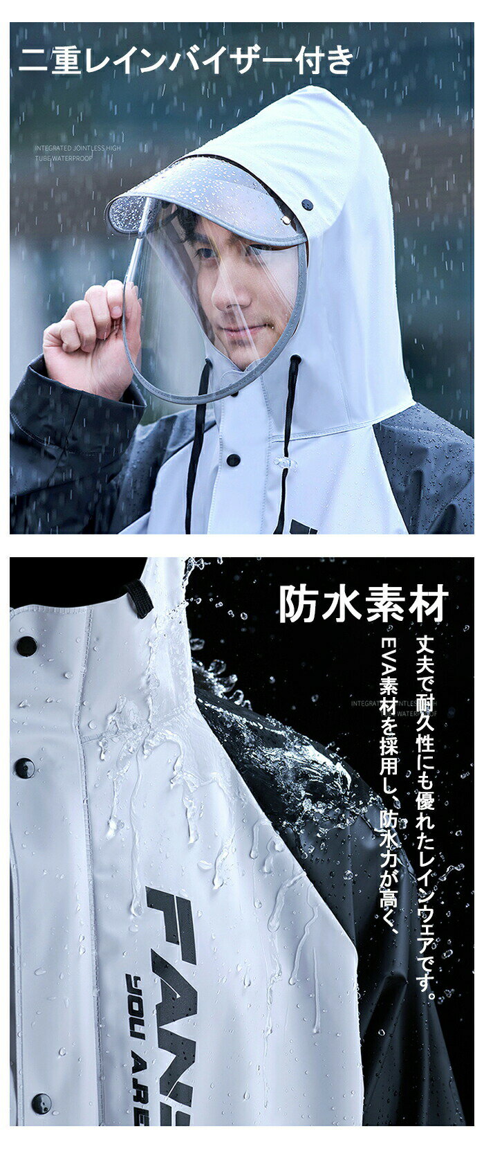 Item Information 商品名 レインコートメンズ レディース 自転車 ロング丈のおしゃれなレインウェア リュックにも対応 完全防水 防风 豪雨 梅雨対策 防災グッズ 反射テープ 収納袋付き サイズ M-3XL 素材 ポリエステル カラー グレー、ブルー、ピンク、イエロー 、説明 雨の日も視界クリア!透明バイザー 自転車やバイクの運転も安心なクリアバイザー付きです。