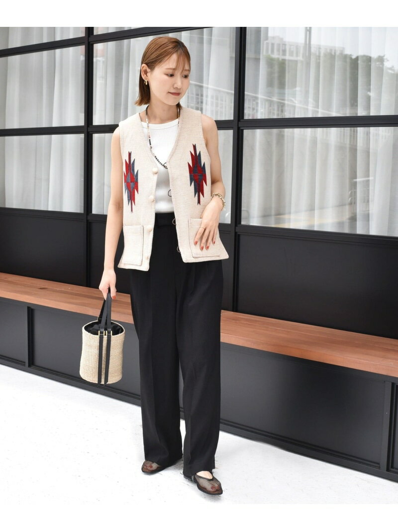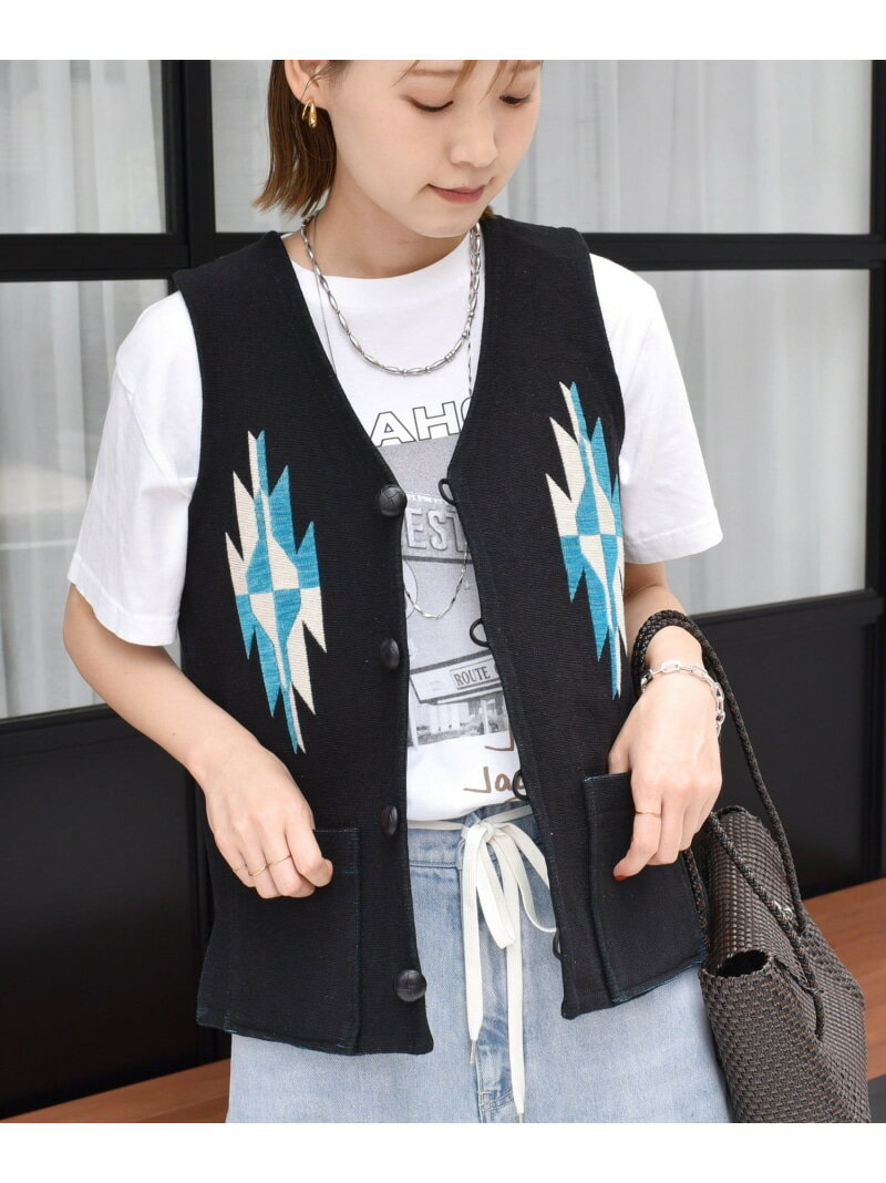 【SHIPS別注】UHURU:ジャカード ベスト-25SS-気軽に秋の気分を取り入れられるジャカードベスト伝統的なブランケット織り物にウール見えのざっくりとした風合いをジャカード織りで表現したベスト。