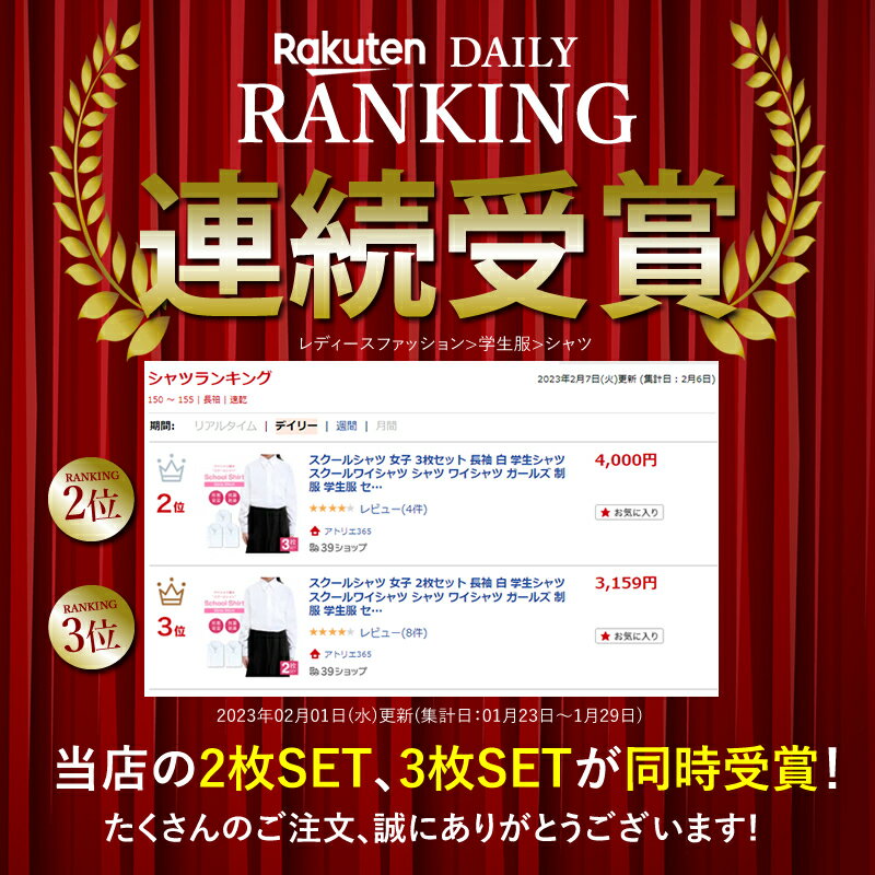 【キーワード】スクールシャツ 女子 3枚セット 長袖 白 学生シャツ スクールワイシャツ シャツ ワイシャツ ガールズ 制服 学生服 セット 形態安定 中学生 高校生 レディース カッターシャツ 学生ワイシャツ 入学準備 蛍光白 A体 スクール シャツ 学生ワイシャツ 女子 女 すくーるしゃつ おすすめ 子供 子ども 子供用 卒業式 入学式 学校 高校 中学 学生 ビジネス 結婚式 葬式 150 155 160 165 170 製造元 中国・ミャンマー