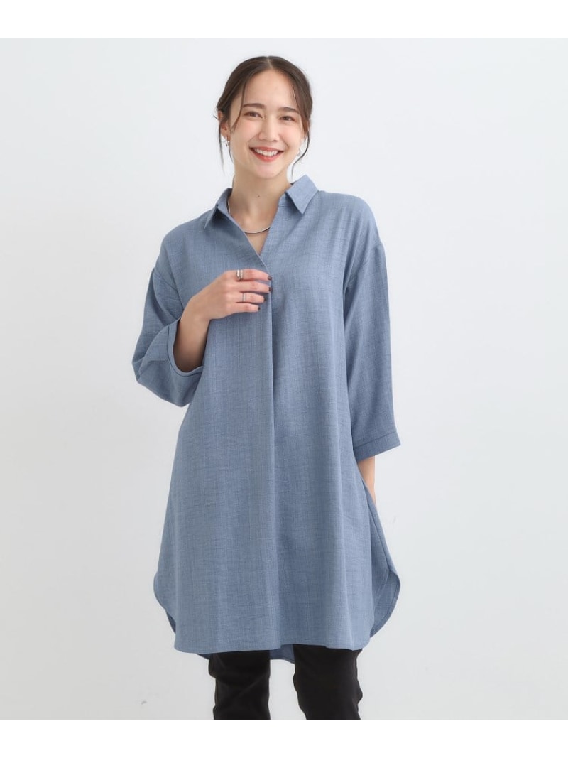 【S-LL/体型カバー】さらっとしたタッチが魅力 デニムライクチュニック