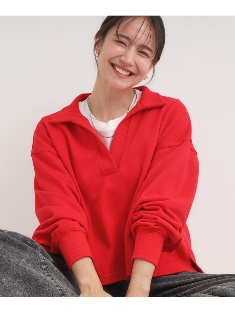 【なめらかタッチ/洗濯機可】スキッパーポロスウェット