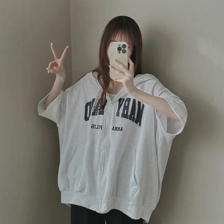 サッと羽織って「お洒落」な半袖パーカー!フルジップが便利でレイヤードしやすい~通気性のある薄手生地感で、春夏のお洒落を快適に。