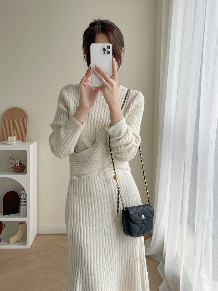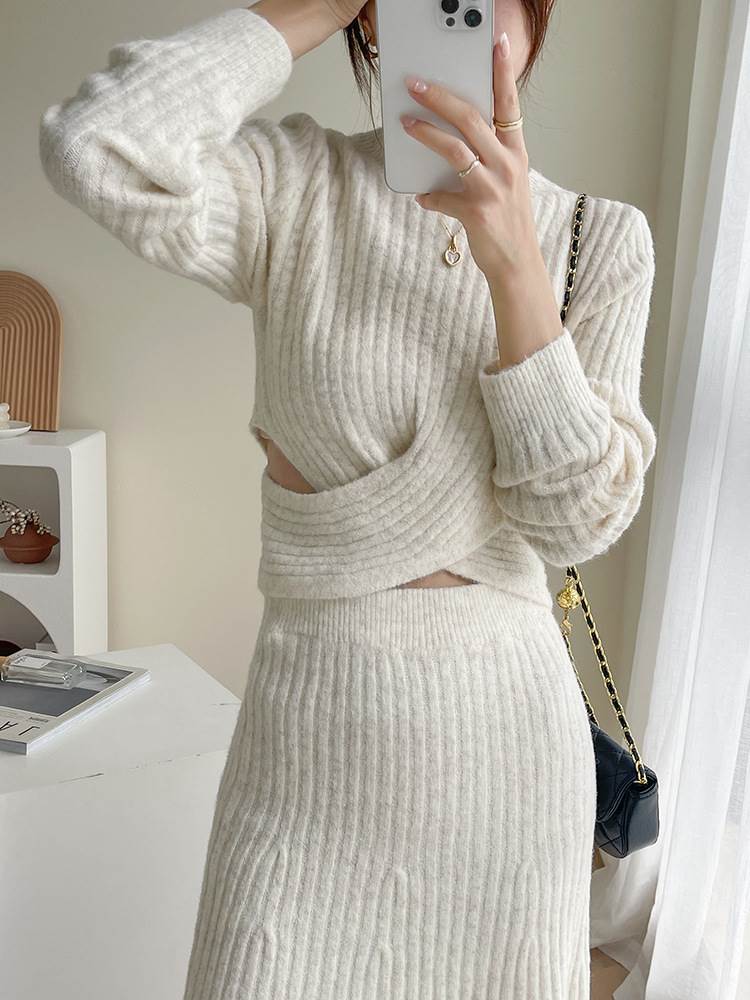 al-403 2点セット セットアップ 上下セット レディース ニットソー 長袖 プルオーバー ウエストマーク ミモレ丈スカート ウエストゴム Aライン かわいい 大人可愛い きれいめ シンプル 上品 おしゃれ かっこいい カジュアル こなれ感 個性的 主役級 存在感 抜け感 秋 冬 ベーシック ナチュラル クール キュート フェミニン 無地 女性用 ママ OL 学生 通学 デート お出かけ お泊まり 女子会 旅行 休日 カフェ ショッピング コンパ レストラン 普段使い 着回し レイヤード 重ね着 ワンサイズ