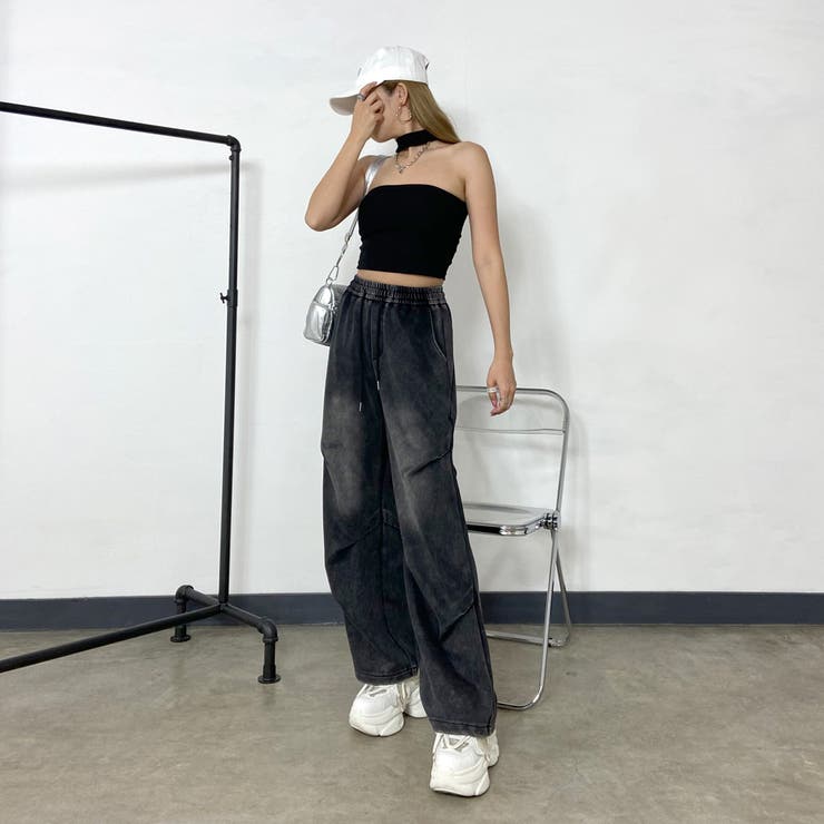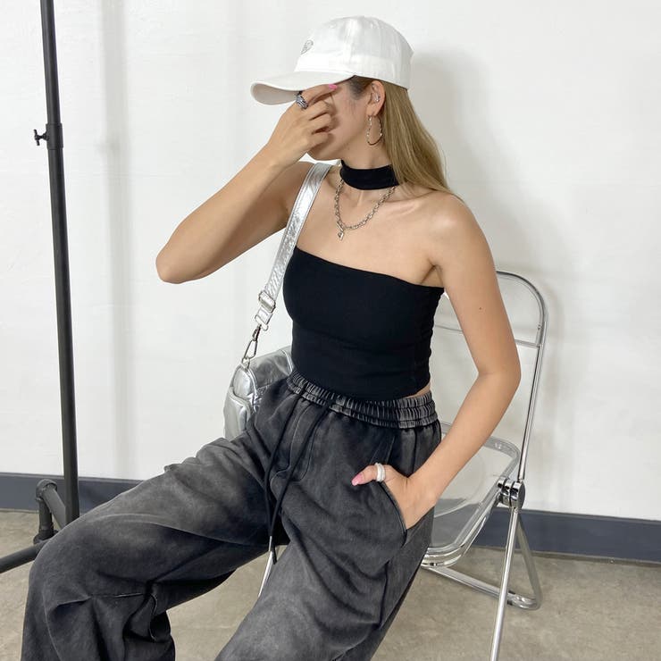 チョーカーデザインがトレンドライクなベアトップ風タンクトップ。