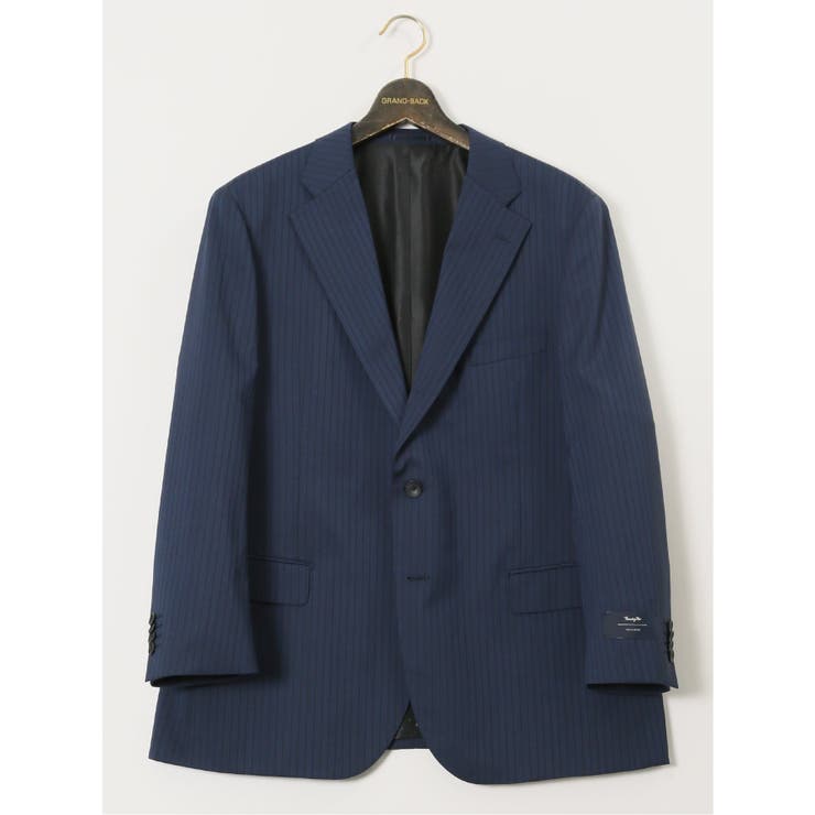 【大きいサイズ】グランバック/GRAND-BACKウール混 2ボタン2ピーススーツ ストライプ青
