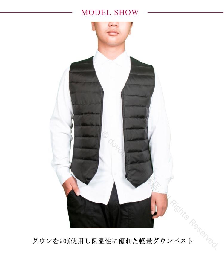 ビジネスシーンには欠かせないジレタイプのインナーダウンが登場!ダウンを90%使用し保温性に優れた軽量ダウンベストVネックでスッキリとした印象のデザインシルエットは適度にフィット感のあるスリムなシルエットライトダウン仕様で、インナーとしても幅広く着用が可能スーツスタイルだけでなくビジネスカジュアルにもマッチする至極のインナーダウンジレへと完成しました。