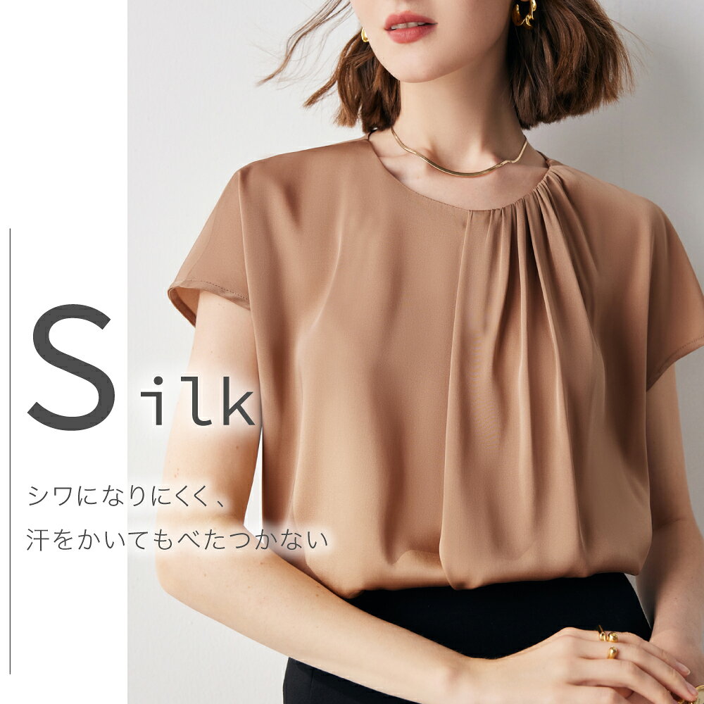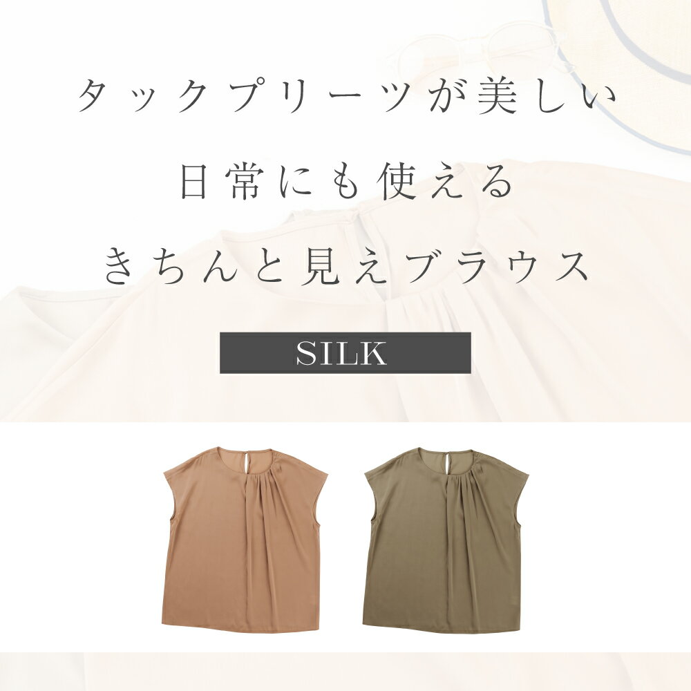 製品仕様 商品名 女性用シルクブラウス(タック・半袖) ST24005 サイズ/寸法 M、L、XL 素材/材質 シルク93.8% ポリウレタン6.2% 色 サンドベージュ、ピンクベージュ ご注意事項 モニターの発色の具合によって実際のものと色が異なる場合がございます。