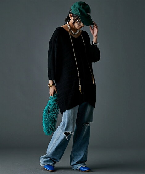 ■デザインオーバーサイズでゆったりとしたサイジングのニットチュニック。