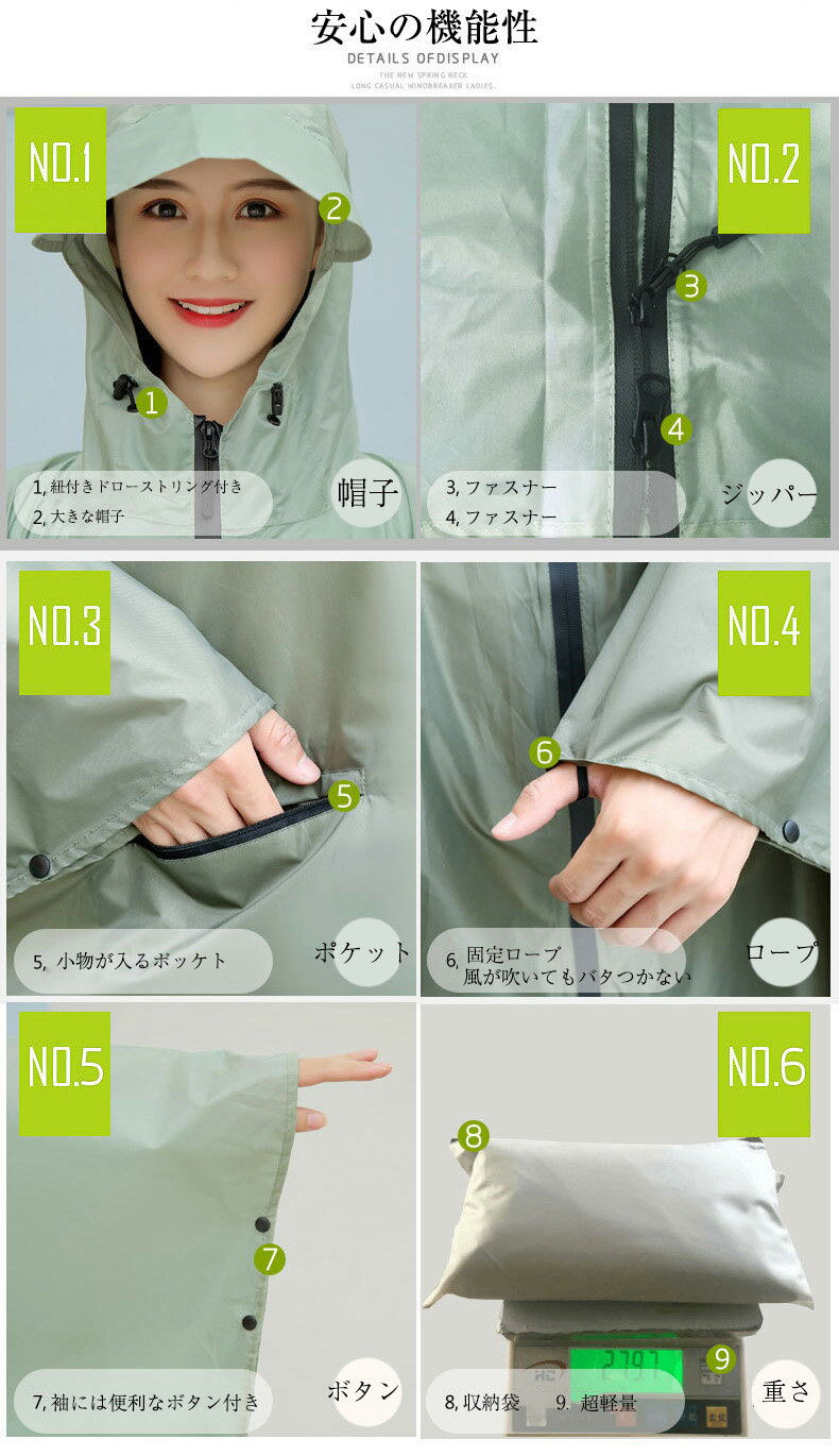 【様々なシーンに適用】 ・通勤 通学に ・自転車やバイクの移動に ・ペットとのお散歩に ・リュックを背負った時の急な雨に ・登山やハイキングの雨具として ・野外フェスやゴルフに ・防災グッズとして ・抱っこ紐を使っての外出に ・小さいお子様と一緒のお出かけに
