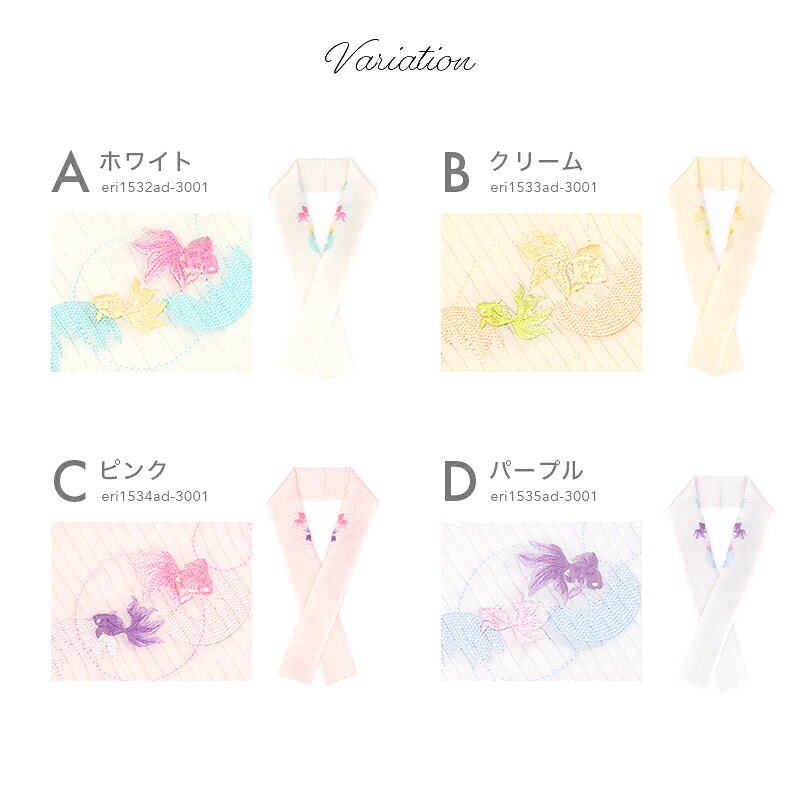 夏の着物に似合う涼しげな刺繍半衿着物のおしゃれを彩る、夏の女性向け半衿(半襟)です。