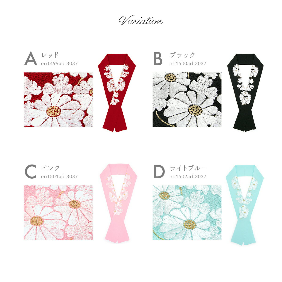 選べる4色!振袖や華やかな着物に似合う刺繍半衿着物のおしゃれを彩る、女性向け半衿(半襟)です。