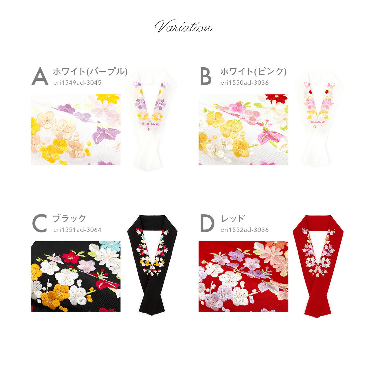 選べる4色!振袖や華やかな着物に似合う刺繍半衿着物のおしゃれを彩る、女性向けの半衿(半襟)です。