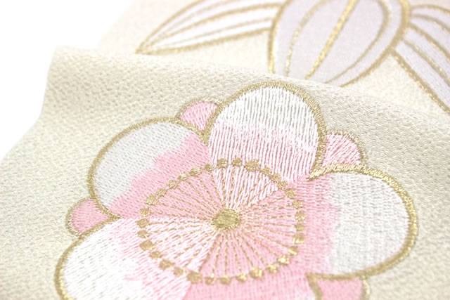ぽってりと高級感のあるポリエステル縮緬に、肉厚の刺繍を施しました。