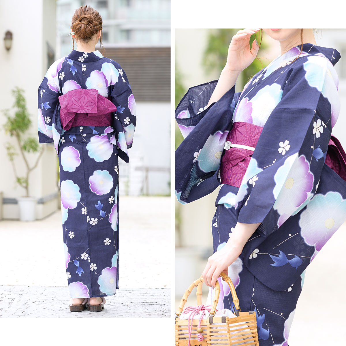 夏のお祭りや花火大会などで、女性らしく美しい着物姿をお楽しみください。