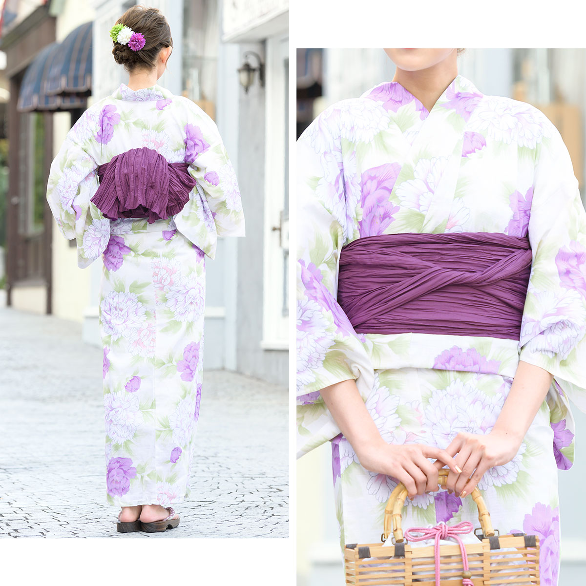 夏のお祭りや花火大会などで、女性らしく美しい着物姿をお楽しみください。