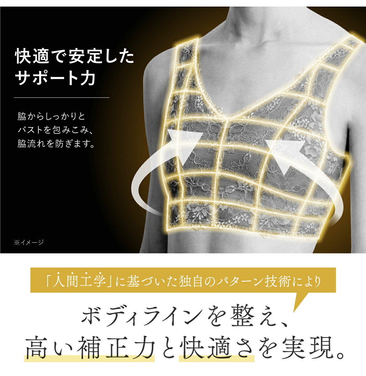 脇からしっかりとバストを包みこみ、脇流れを防ぎます。